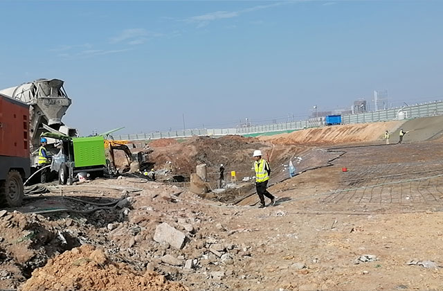 混凝土噴漿機是利用壓縮空氣或其它動力,將按一定比例配合的拌和料通過管道輸送并高速噴射到受噴面上凝結硬化,從而形成混凝土支護層。噴射混凝土技術工藝簡便,施工造價低,適應面廣,在各種建筑領域內發揮了重要作用。