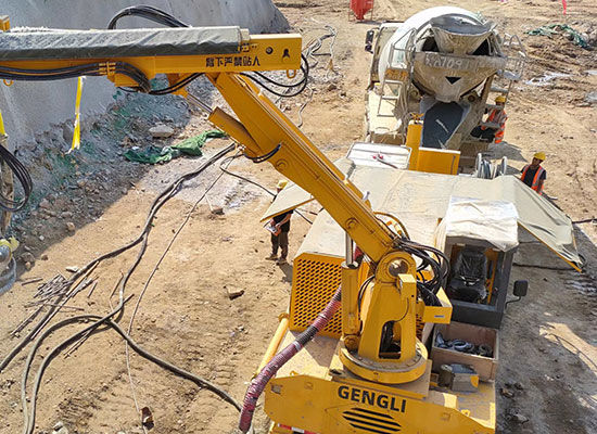 隧道混凝土濕噴臺車是大型智能化濕噴機械,又稱為隧道濕噴機械手、隧道噴漿機械手,采用無線遙控操作,每小時噴射混凝土量30立方,具有施工機械化程度高、安全性強、工作效率高、覆蓋范圍廣、回彈率低、操作靈活方便等特點。隧道混凝土濕噴臺車廣泛應用于鐵路、公路隧道、邊坡、水利、水電的隧洞和涵洞、地鐵以及各種建筑工程等濕噴混凝土作業。